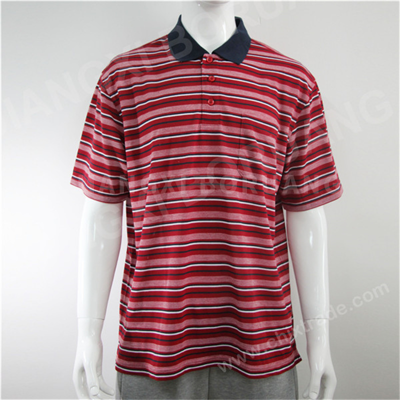 男式全涤珠地条纹POLO衫