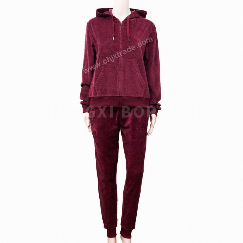 Solid Color Velvet Casual Sportwear Fashion Hoodies with Pant For Womens