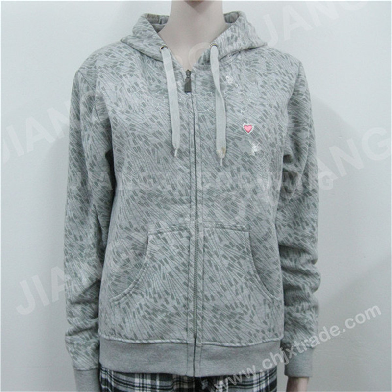 女式绣花薄绒拉链衫