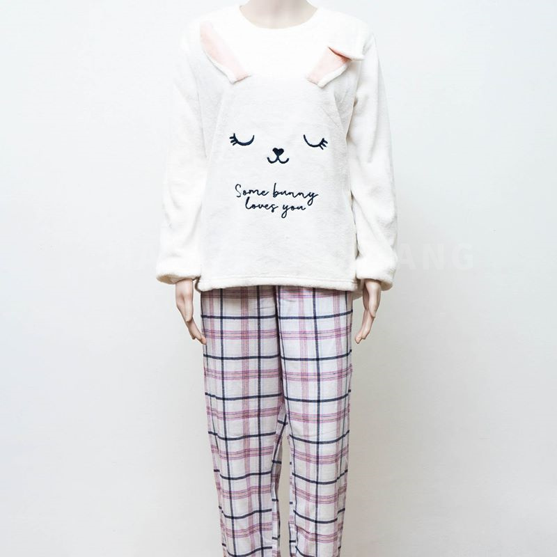 Ladies 3D Embroidery Homewear Coral fleece with Cotton Flannel Pyjama Suit